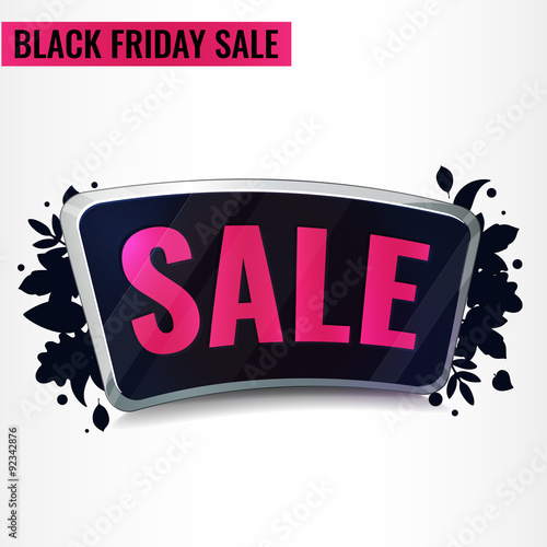 Black Friday Sale tag in black color with pink text. Discount banner.
