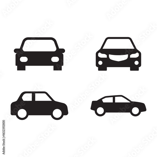 Black front view car icons set and collection