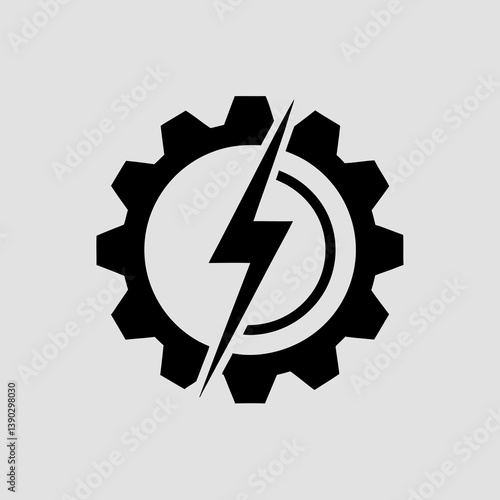 Black gear with a lightning bolt inside a white circle