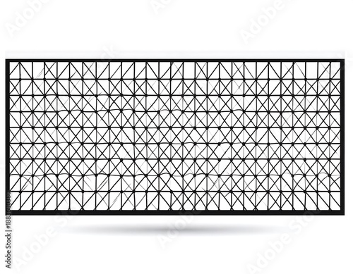 Black geometric rectangular structure composed of a grid of connected lines and points with a shadow underneath