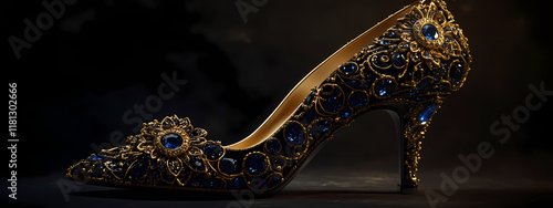 Black heels with gold and sapphire details