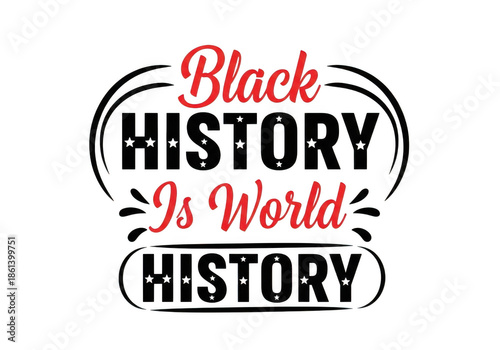 Black History Is World History text with stars and decorative borders, powerful statement isolated on transparent background