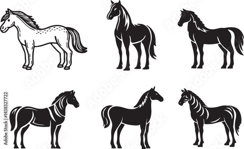 Black Horse Silhouette Vector Set Dynamic Horse Icon Collection