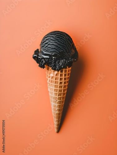Black Ice Cream Cone on an orange Background