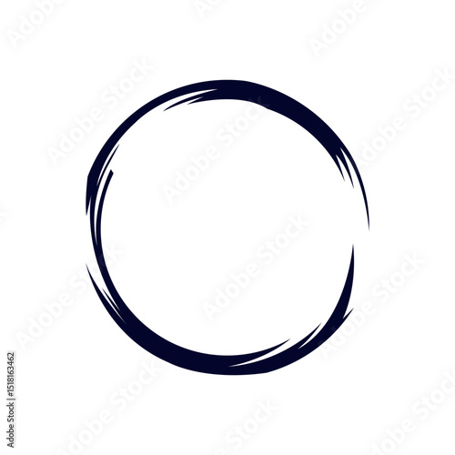 Black ink brush stroke circle on a white background. Handdrawn Zen ens symbol for logos, frames, and minimalist design. Japanese Sumie painting style.