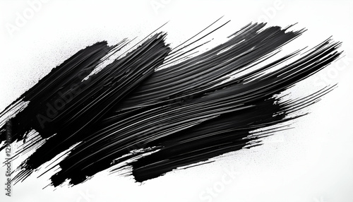 Black Ink Brush Stroke Isolated Dynamic black ink brush stroke on white. Ideal for design elements, textures, or grunge-style projects.