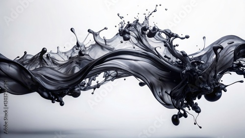 Black Ink Flowing on Canvas - Artistic Liquid Motion on White Background for Creative Projects and Design Uses