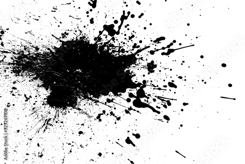 Black ink splash grunge texture, abstract png file cut out and isolated on a transparent background, stock illustration image