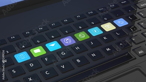 Black keyboard closeup with apps icons shortcuts