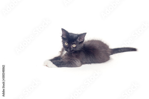 Black kitten isolated on a white background