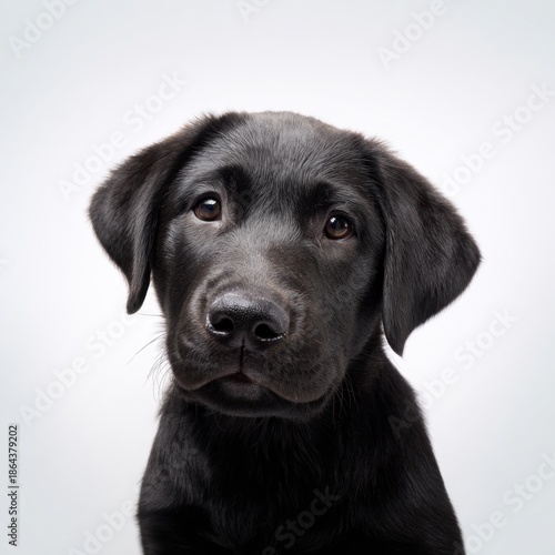 Black Labrador puppy gazes curiously with expressive eyes in a calm indoor setting that feels inviting and warm