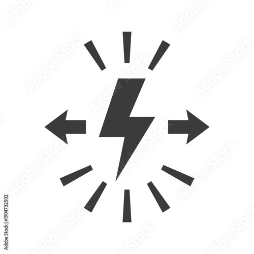 Black lightning bolt illustration with radiating lines and arrows