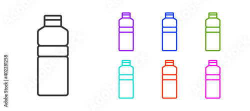 Black line Fitness shaker icon isolated on white background. Sports shaker bottle with lid for water and protein cocktails. Set icons colorful. Vector.