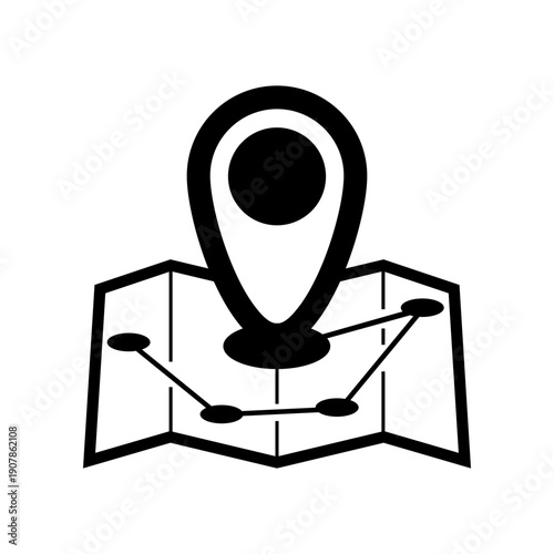 Black location pin tag on brown paper map icon flat vector design