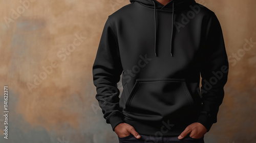 Black Male Hoodie Sweatshirt Mockup with Long Sleeves for Winter Wear Design