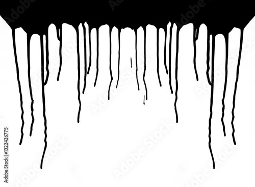 Black melting drips paint. melt drips paint abstract liquid. border and drips ink. painted wall surface, flowing paint of color, texture. mockup. isolated on white background. illustration. mock up.