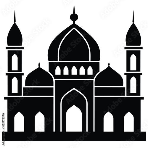 Black mosque silhouette on white background vector illustration