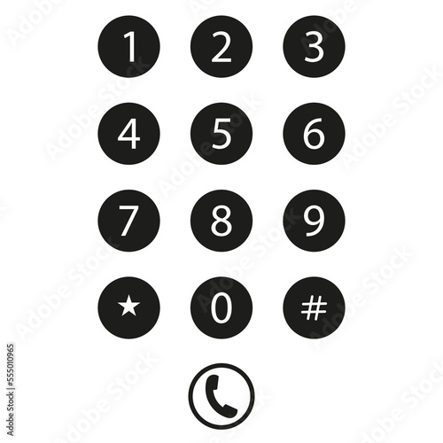 Black numbers phone icon. Smartphone interface. Call symbol. Vector illustration. Stock image.