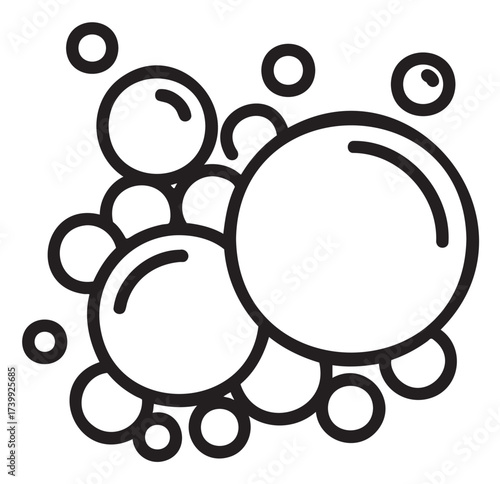Black outline drawing of multiple overlapping bubbles in various sizes, conveying a sense of lightness and playfulness.