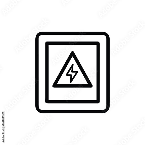 Black Outline High Voltage Warning Sign on Transparent Background Icon