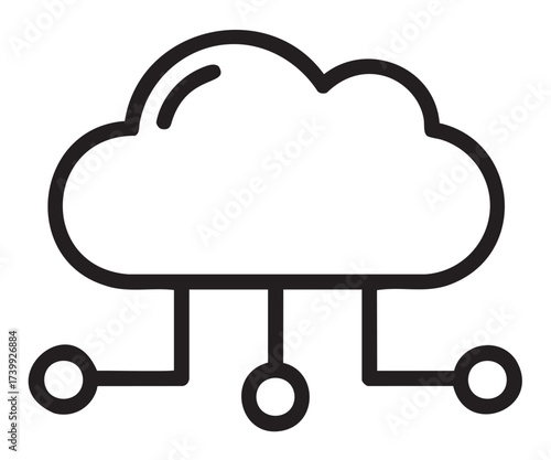 Black outline icon of a cloud with three connected nodes, representing a cloud computing network system.