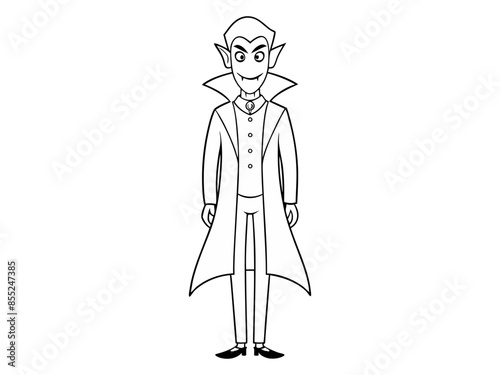 Black outline of vampire character isolated on white background. Concept of Halloween, Dracula, spooky figure, minimalist style, fantasy creature. Print, icon, design element, coloring page