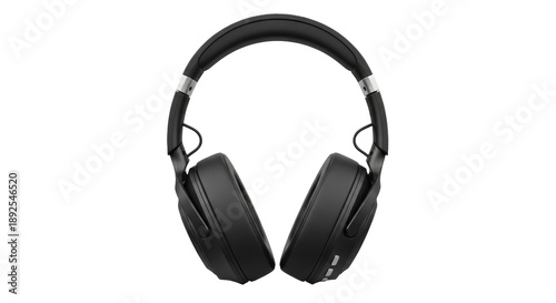 Black over-ear headphones PNG isolated on transparent background, wireless headset for music listening and audio entertainment