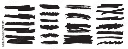 black paint ink brush strokes lines set. Underline dirty grunge bold design elements.