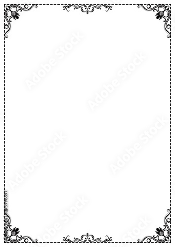 Black pattern frame, abstract vintage border on white background