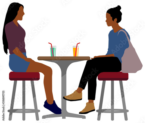 Black people (daily common life ) silhouette vector illustration / women talking in a cafe