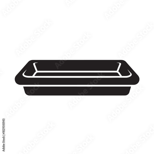 Black rectangular tray vector icon simple flat design element isolated on white background