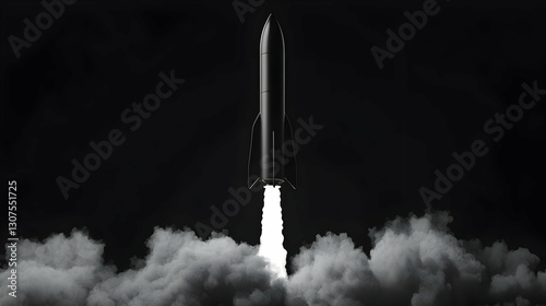 Black Rocket Launching Into Dark Space With Clouds Below