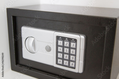 Black safe box in the shelves