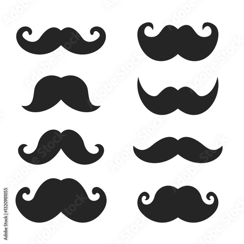 Black set mustaches. Collection silhouette black vintage moustache isolated on white background. Vector illustration