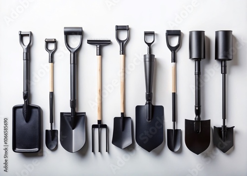 Black Shovel Icons Set on White Background - Vector Illustrations of Shovel Symbols for Gardening, Construction, and Landscaping Use