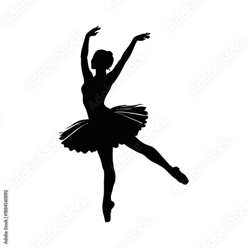Black silhouette illustration of a graceful ballerina performing an elegant ballet dance pose vector