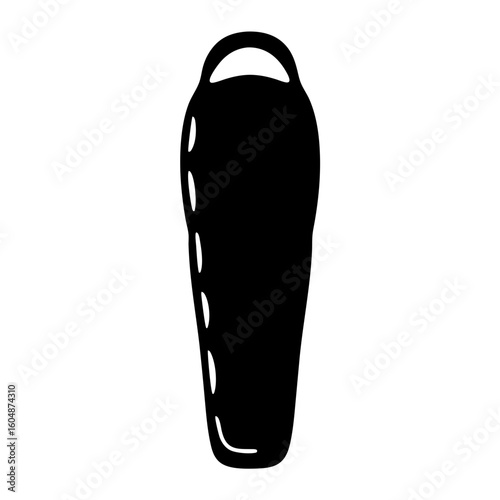Black Silhouette of a Classic Sleeping Bag for Camping and Outdoor Activities