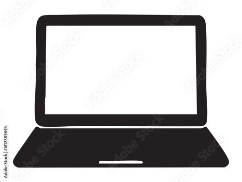 Black silhouette of a laptop isolated on white background, graphic illustration. concept of technology, computer icon, portable device, digital design, modern gadget.