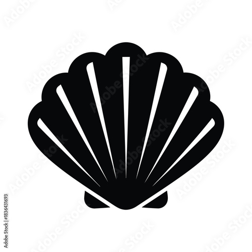 Black Silhouette of a Scallop Shell on White Background