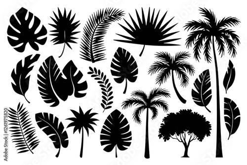 Black Silhouettes of Tropical Leaves, Palms & Trees – High-Quality PNG