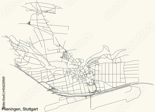 Black simple detailed street roads map on vintage beige background of the quarter Plieningen of district Plieningen of Stuttgart, Germany