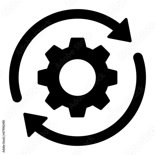 Black single round gear workflow icon, simple cogwheel process cycle glyph flat design vector pictogram, infographic interface elements for app logo web button ui ux isolated on white background