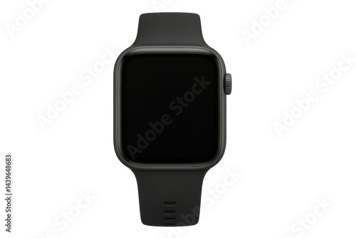 Black Smartwatch with Blank Screen on Isolated Background