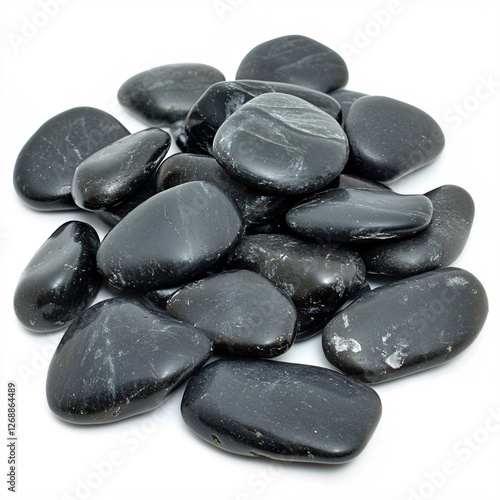 black smooth river rocks spa wellness meditation zen stones on white background