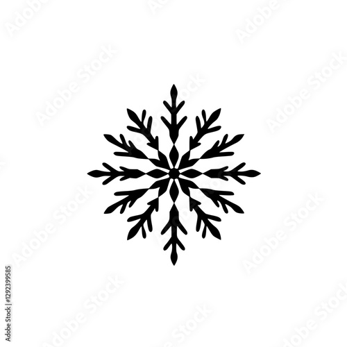 Black Snowflake Icon, Snowflake on White Background, Christmas Winter Holiday Illustration.