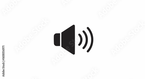 Black speaker icon with sound waves emanating from it on a white background isolated in the center
