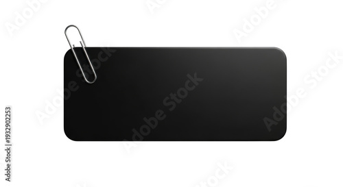 Black sticky note with a paperclip on the corner isolated on transparent background