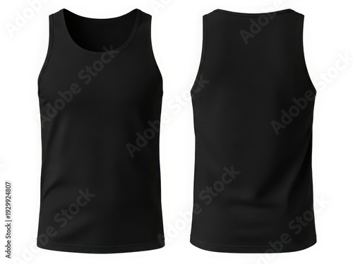 Black tank tops displayed from front and back views on white background