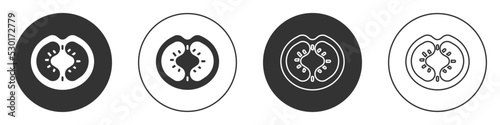 Black Tomato icon isolated on white background. Circle button. Vector