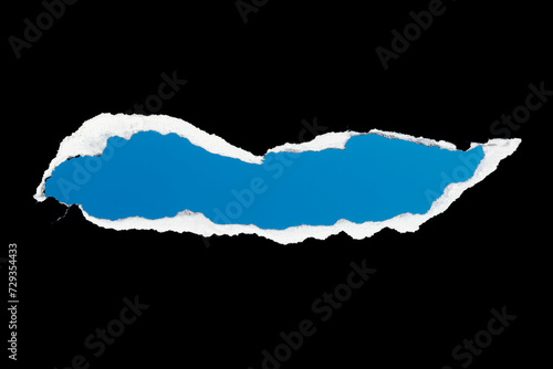 Black Torn Paper with a Hole on a Blue Background